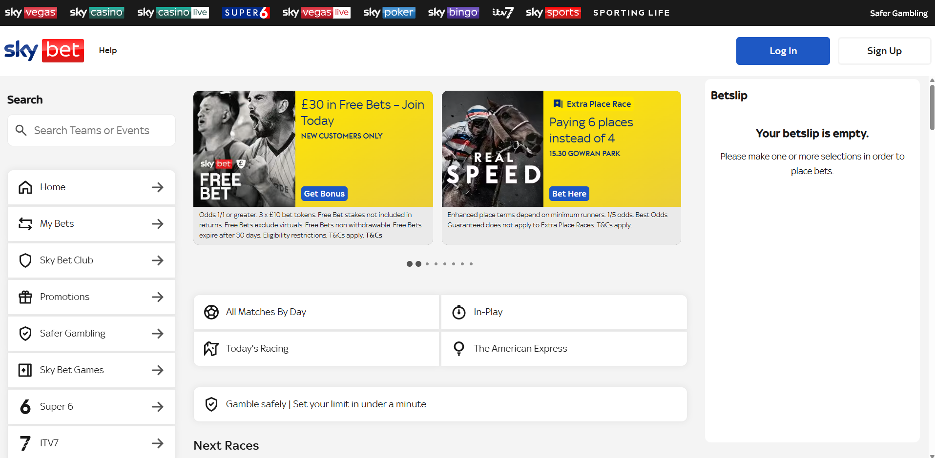 SkyBet delivers a wide sportsbook with strong football and horse racing coverage along with competitive odds across major UK leagues and events. The site shines with its deep market depth, offering a large selection of bet types from singles and each‑ways to build‑your‑own multiples with BuildABet and Request‑A‑Bet, giving punters real flexibility to tailor selections. Live betting markets update quickly during matches, and selected live streaming is available for key football and horse racing events, enhancing in‑play wagering.